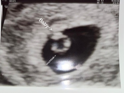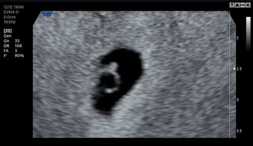 Afgelopen maandag met precies 6 weken. De vruchtzak had ook precies de grootte van 6 weken. Een mooi kloppend hartje al gezien. 馃グ