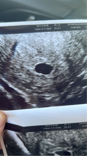 Vandaag de eerste echo gehad (rond de 6 weken). Er waren twee vruchtzakjes zichtbaar waarvan eentje met een kloppend hartje. 馃挄 nu hopen dat het goed blijft gaan. Over 1,5 week weer een echo 馃馃徑