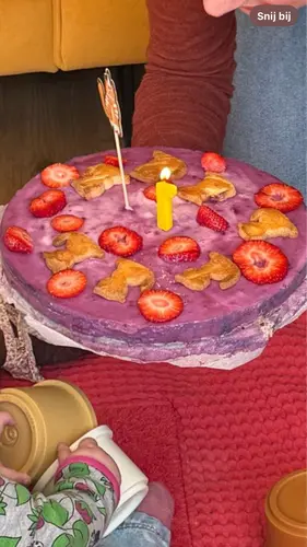 Ik had deze gemaakt, ze vond hem heerlijk! https://www.bellefae.nl/mama-baby/gezonde-makkelijke-verjaardagstaart-voor-je-baby/