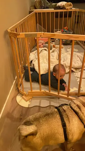 Ik houd hem constant in het oog omdat hij steeds omvalt of gewoon om laat vallen en dat vind ik gevaarlijk. Heb nu een topper van bed in de woonkamer gelegd 馃ぃ