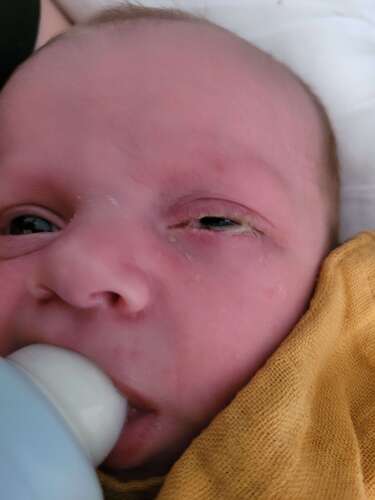 Maar m'n zoontje van 3 weken is wat verkouden en heeft sinds een paar dagen een "vies" oogje.
