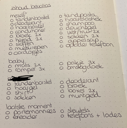Dit is mijn lijstje van alles. Naam van m’n man even doorgekrast.