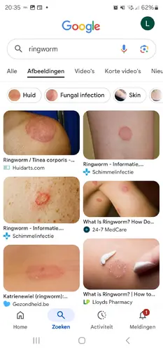 Het lijkt op ringworm. Ik zie het niet heel goed, maar zijn het cirkels(ron ...
