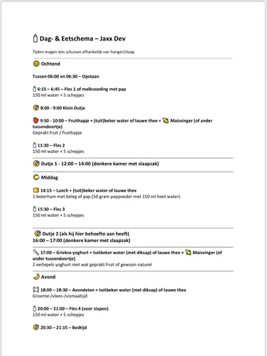 Als ze in de ochtend eerder wakker wordt( als ze wel doorslaapt bijvoorbeeld) verschuift alles dus een beetje naar voren. Bedtijd is altijd 3u na het laatste dutje. Is ze eerder wakker, gaat ze dus eerder naar bed. 😊