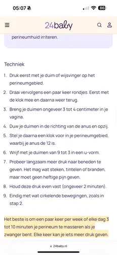 Had van anderen (en zelfs de verloskundige) gehoord dat het voor sommige mensen echt werkt, dus vorige keer een paar keer geprobeerd. M'n man deed het dan, want zelf doen is niet echt meer mogelijk tegen die tijd 😛 Maar vond het inderdaad best een gedoe en had geen zin dat elke dag te doen. Uiteindelijk moest ik een knip vanwege vacuümpomp, dus kan niet zeggen of het gewerkt heeft helaas. Maar is denk ik inderdaad zo'n geval van baadt het niet dan schaadt het niet.