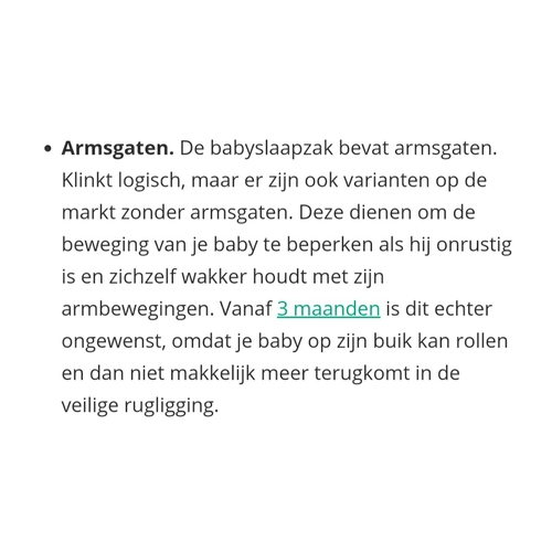 Hoezo niet? De armen zijn juist vrij hierdoor. Dit werkt voor ons perfect om het inbakeren af te bouwen. We zijn nu van puckababy naar slaapzak met armen w茅l vrij maar de handjes niet want daar wordt hij wakker van. Binnenkort gewoon naar de slaapzak met handjes vrij