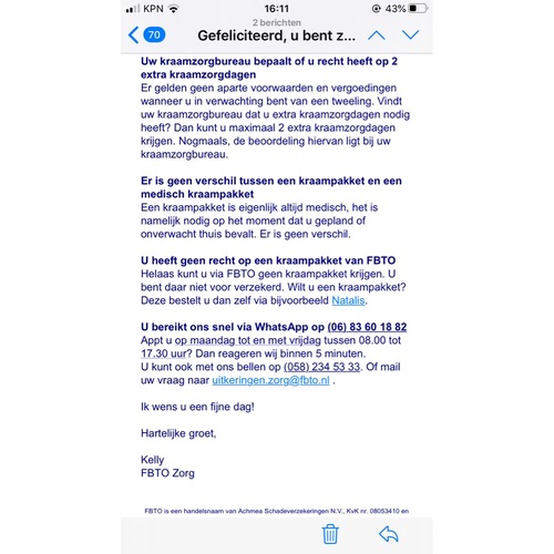 Bij mij ook niet vanuit de zorgverzekeraar, maar mijn schoonmoeder is kraamverzorgster dus haal met haar alle belangrijke dingen, k hoor ook vaak dat er dingen inzitten die je niet gebruikt. Online een pakket samengesteld kopen vind ik nog prijzig €40/€50