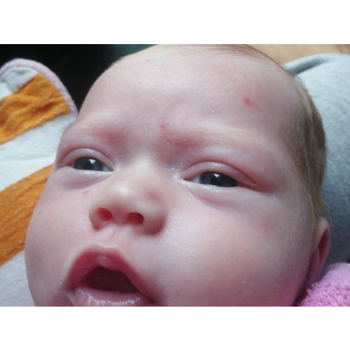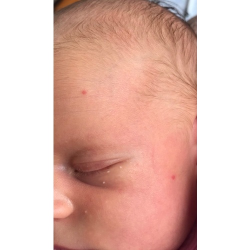Jaa ik dacht al muggenbeten, maar mijn vriend vond ze te klein. Ze zitten aan 1 kant van het gezicht en ze lag de nacht ervoor te slapen op haar andere gezichtshelft en we hadden een vervelende mug die we uren hebben gezocht 😋