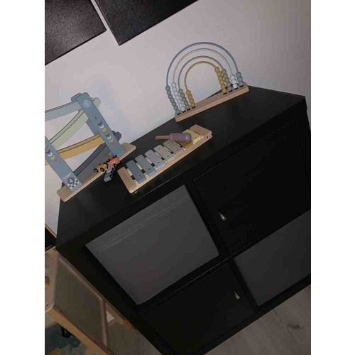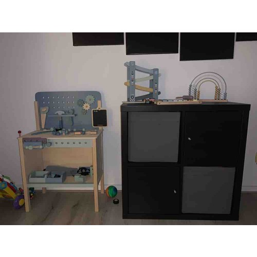 Mijn ervaring bij ons eerste kindje is dat je steeds meer meubels gaat kopen om speelgoed op te bergen. Zo zijn wij begonnen met een speelgoedkist, daarna een lage ikeakast trofast, een bureautje en als laatst een grotere kast van Woood. Er komt alleen maar meer speelgoed bij.