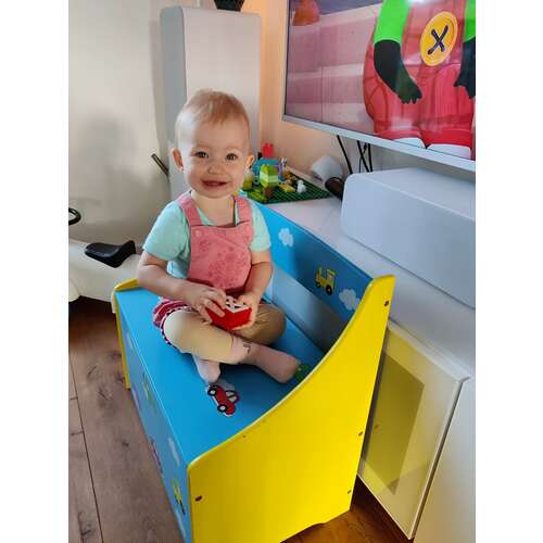We hebben ook een andere speelgoed kist, van woood volgens mij. Ik vind die klep altijd maar eng ivm vingertjes 😁! Als ze eraan gaan staan en wat wiebelen altijd bang dat die klep dichtklapt…