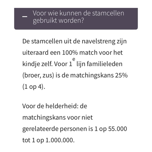 Tenminste dat is ons toen verteld. Ik kan het nu niet zo snel terug vinden op de site van de stamcelbank