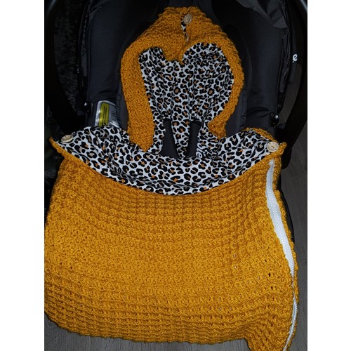 Zo lekker als je handig bent. Ik heb zelf een wikkeldeken genaaid van wafelkatoen en katoen met gaten voor de riempjes van de maxi cosi. Zo heb ik 2 in 1.