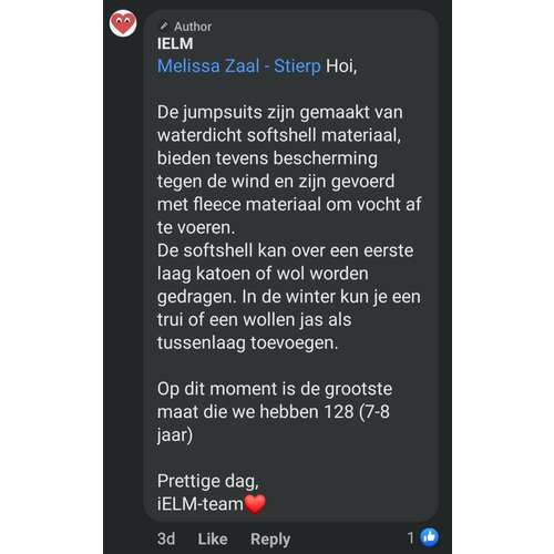 Het is geen ski pak, dus denk dat het vooral in het na- en voorjaar een musthave is. Zodra die kids nat zijn is de pret er gauw af en daar werkt dit wel ideaal tegen