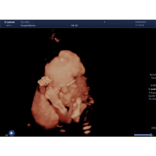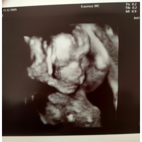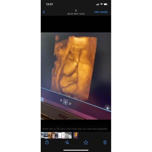 Ik moest voor de 20 weken echo naar het Erasmus MC dit omdat bij de STAR zij niet alles goed kon zien...in de tussentijd corona gehad, helaas zat er wat tijd tussen dus. Hier was ik net 21 weken (vorige week donderdag) naast de uitgebreide echo (alles was gelukkig goed, hij is alleen lekker op maat...) heeft de echoscopist ook een 3d plaatje gemaakt..met veel zorgvuldigheid, niet om gevraagd maar misschien is dit wel het extraatje wat je krijgt in zo'n ziekenhuis, zoals je ziet. Mooi zichtbaar gezichtje :) wij hebben met 26 weken een pretecho 3d/4d gepland staan, ze zeggen dat het dan wel de beste tijd is, kindje is dan ook wat voller in het gezicht doordat die dan wat meer vet aanmaakt ;)
