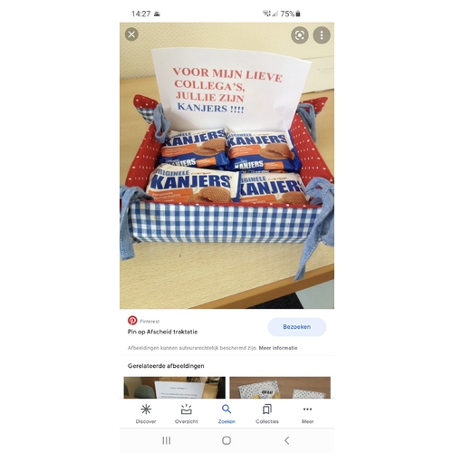 Volgende week vrijdag is mijn laatste werkdag voor mijn verlof. Het lijkt me leuk om iets leuks of lekkers te regelen voor mijn collega鈥檚 die de komende maanden het werk met iemand minder moeten doen! Iemand leuke/originele ideeen?