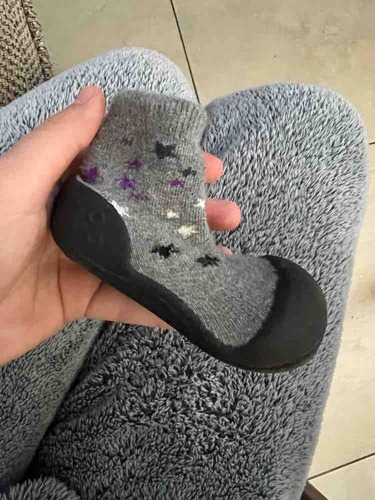 Maar deze schoentjes zijn misschien niet mooi maar zijn erg goed voor het leren lopen. Daarnaast zitten ze ook comfortabel aangezien het alleen een zool heeft en de rest sok is. Past dus ook bij hoge wreven. Volgens mij kostte ze €10,- zoiets.