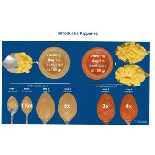 Ei kook ik, en drna prakken. Ik meng dit dan tussen een groente in, maar t blijft lastig. Tis echt amper n schijfje wat ze krijgt. De stukjes zijn voor haar nog moeilijk te verwerken.