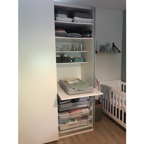 Bij Ikea hebben ze daar vast wel een oplossing voor: https://www.ikea.com/nl/nl/ideas/babykamer-weinig-ruimte-pub845cb981.