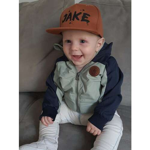 Deze gekocht bij Aliexpress. Zitten zo cute. Mijn zoon heet Kayri dus met de letter K vond ik wel leuk. Ze hebben ook andere letters. Verder ook nog een denim pet van Hema ( helaas nog te groot en niet verstelbaar) en Prenatal en H&M hebben ook mooie petten (verstelbaar)