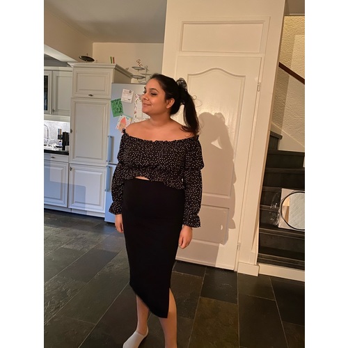 Ik kan maar een foto toevoegen, maar dit is een zwangerschapsrok van SHEIN en een croptop. Maar ik koop gewoon een paar rokken. Doe er nu een panty onder en een shirt boven. En in de zomer knoop ik mijn shirtjes zodat het croptop wordt en leuke croptops erbovenopen. Vaak is het binnen 2 weken binnen. Bij mij vaak zelfs al binnen een week. Kwaliteit is echt goed van de kleding. Koop er best vaak kleding en valt ook gewoon netjes op maat vaak.