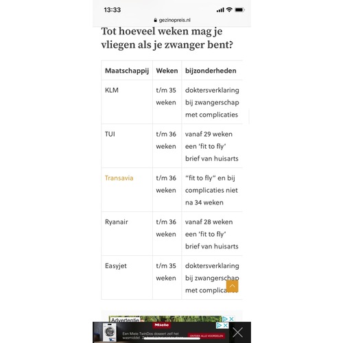 Oo wel nog een tip. Geef het aan bij inchecken.. je mag als zwangere niet bij een nooduitgang zitten. En ik vond het chill om bij het gangpad te zitten mocht ik naar de wc moeten, dus kreeg een andere stoel (van de stewardess in het vliegtuig).