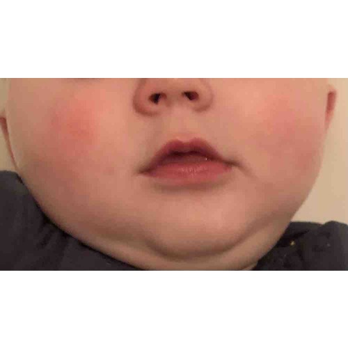 Mijn zoontje is verkouden sinds eergisteren. Sindsdien heeft hij ook echt rode wangen, maar geen koorts. Wat kan dit verder zijn? Sommige plekjes ook beetje droog.