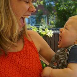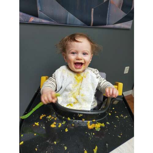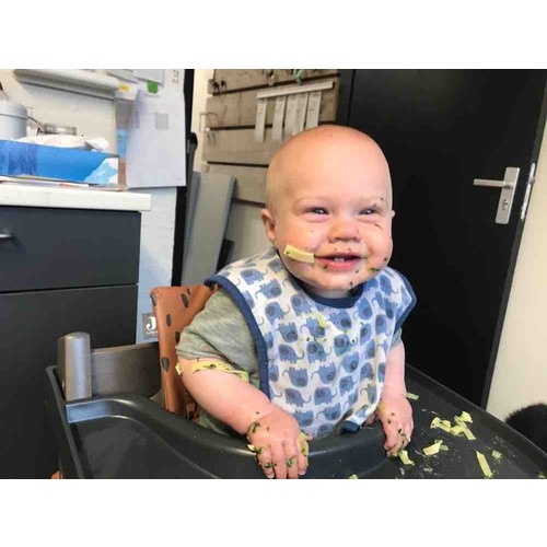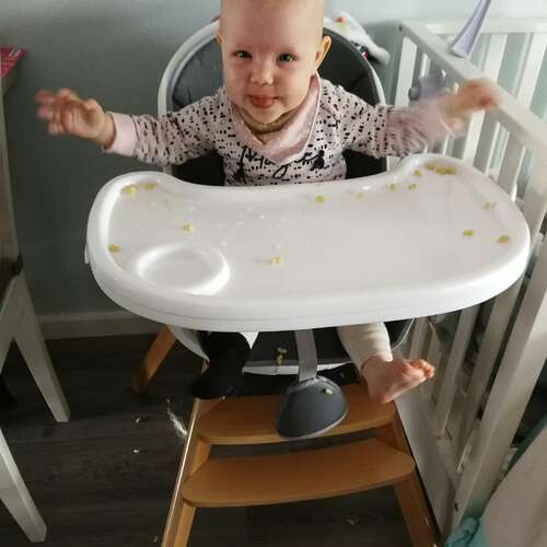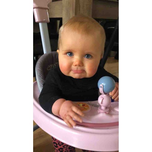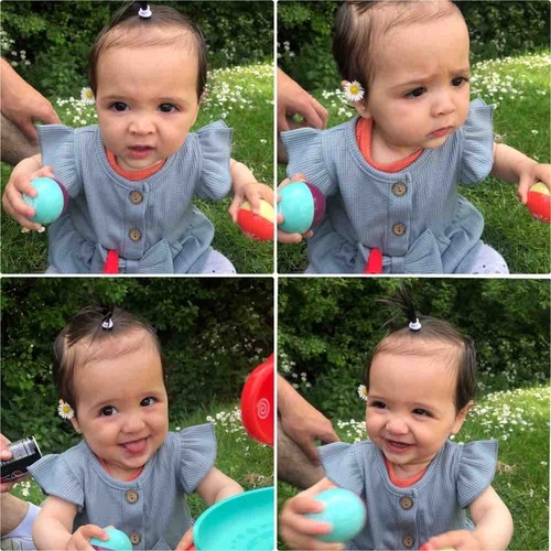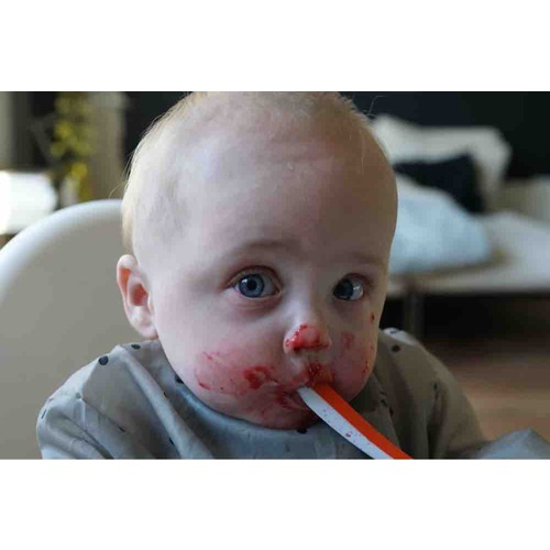 Lekker alle macaroni eerst uit het schaaltje graaien om het vervolgens op de grond gooien. En dan die boevenkop die ze er bij trekt.
