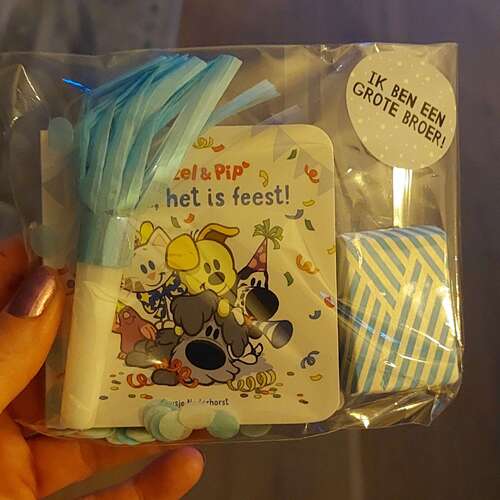 Onze dochter was wel al iets ouder (3jaar) maar heeft dit getrakteerd op de peutergroep. In het kleine cadeautje zaten rozijntjes. Kaartje eraan met hoera ik heb een zusje gekregen. Ik vond het leuk om te doen en zag hoe trots ze was/is als grote zus 鈽猴笍