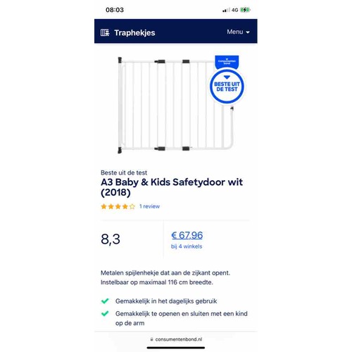 Na lang zoeken hebben wij traphekje van het merk BabyDan Guard Me gekocht. Deze is één van de best geteste traphekje. Een beetje prijzig ten opzichte van andere merken en je moet helaas ook boren. Maar voor de veiligheid van onze dochters is het allemaal waard.