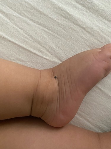 Moedervlek misschien? Mijn dochter heeft er zo eentje op haar enkel, echt pikzwart.