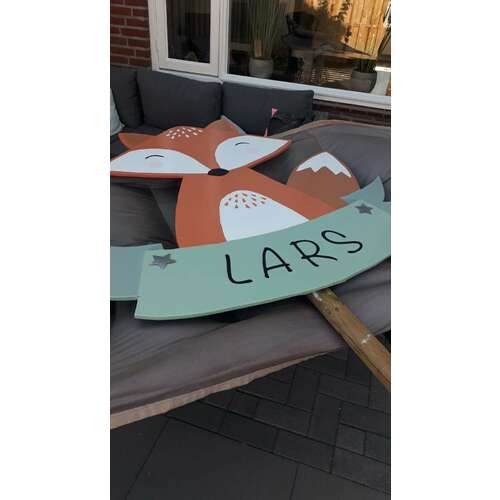 Mijn man heeft vorig jaar voor de geboorte van ons zoontje zelf een bord gemaakt in de vorm van een kinderwagen. Die gaan we nu opnieuw gebruiken maar dan met de naam van ons dochtertje erop en het blauw spuiten we over met roze.