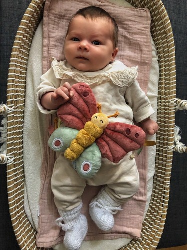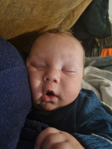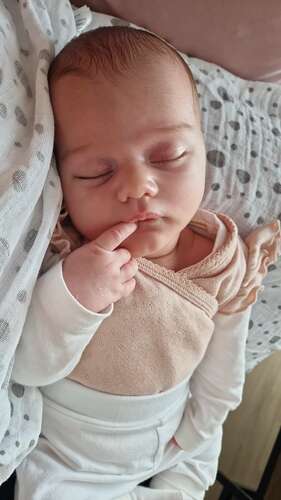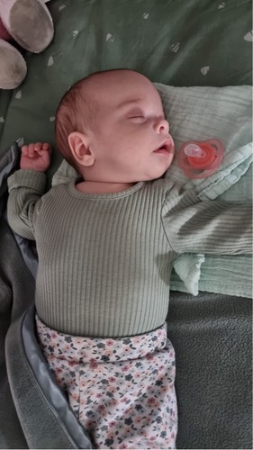 M'n kleine meid nu 3 weken oud. Ze kan zo lekker slapen.