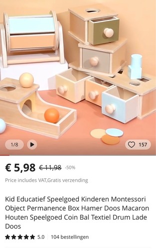 Inderdaad heel duur maar ik heb via Aliexpress precies dit soort dingen gevonden! Ik heb de ‘spinning rainbow’ gekocht en vind hem echt mooi! 😊 Zo’n tissue box hebben ze ook! Als je zoekt op montessori toys kan je een hoop vinden :)