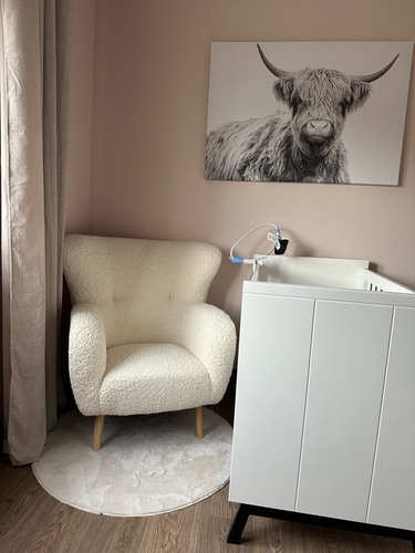 Ik heb hem ook! Gebruik hem tijden het voeden en het is echt ideaal! Kan er met een kleermakerszit op zitten en idd fijne hoge leuningen