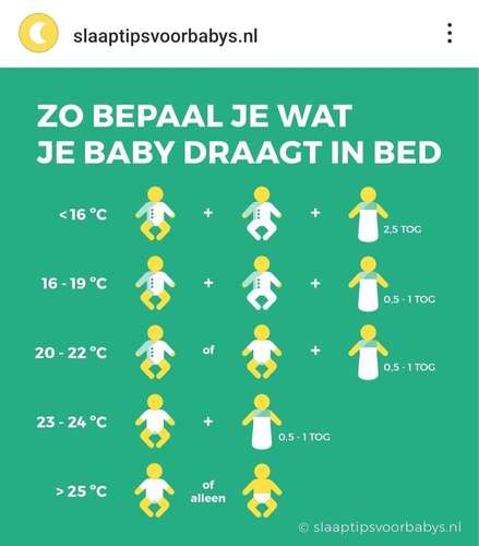 Realiseer je ook dat elk kindje anders is. Ik heb een dochter van inmiddels 3 die het altijd warm had en aan een winterslaapzak met romper genoeg had. Nu heb ik een koukleum van 4 maanden die met kleren, een winterslaapzak en twee dekentjes slaapt. Ik temperatuur niet, maar check altijd zijn nekje.