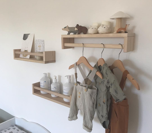 Hier is de babykamer nog lang niet af, maar ik vond het ook nog een beetje te strak en beige in de kamer dus ik heb een leuk kapstokje en lampje gekocht van De Noest en een lamp van Hartendief. En verder inderdaad wat boekjes, knuffeltjes op een plankje?