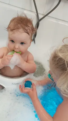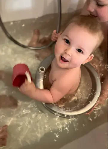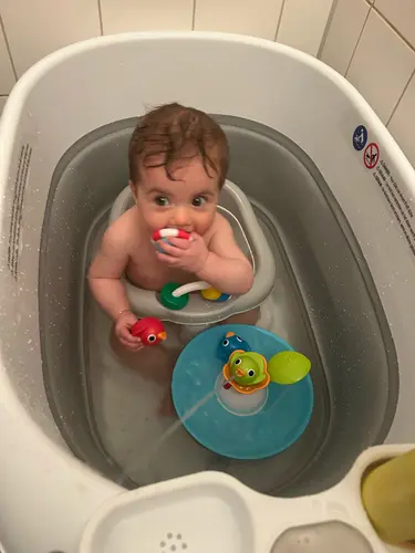 Wij hebben dit zitje laatst aangeschaft en zijn er super blij mee! Die lig zitjes in het bad vond ik echt niks. Nu kan ze redelijk goed zelf zitten. Ik doe er wel een grote hydrofiele doek in zodat ze steviger zit en minder ruimte is om onderuit ze zakken. Ze vind het zelf ook super leuk en heeft meer ruimte om te spelen omdat ze zit.