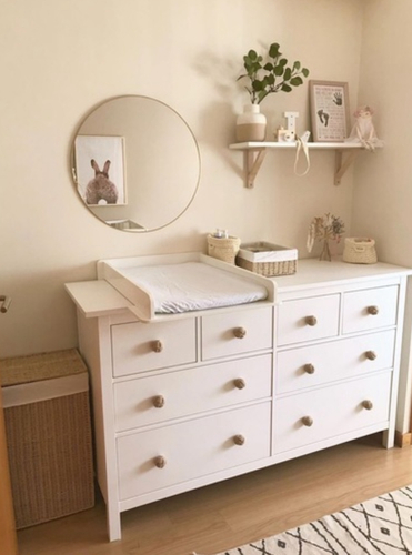 Wij hebben ook de hemnes kast bij onze zoon gehad en ipv een bladvergroter hebben wij als aankleedkussen de leander matty gekocht. Is verzwaard en blijft prima zo liggen! Nu nog steeds (is nu 11 kilo en 17 maanden)