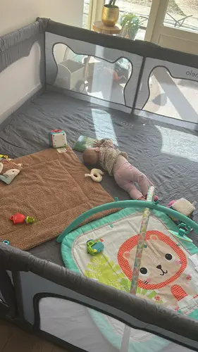 Voor Liza is hij groot genoeg. Binnen kruipt ze de hele kamer door. We hebben ook een groot speelkleed maar ze ontdekt vooral alle meubels etc 馃槃