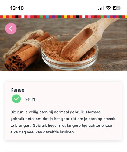 Kaneel is volgens die app gewoon veilig om te eten hoor..?