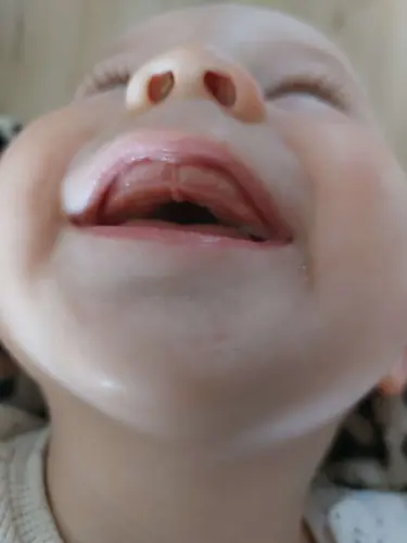 Hier had hij ook eerst twee voortanden onder, toen twee hoektanden onder.. en in diezelfde week kwamen de hoektanden boven én de voortanden boven door 😅