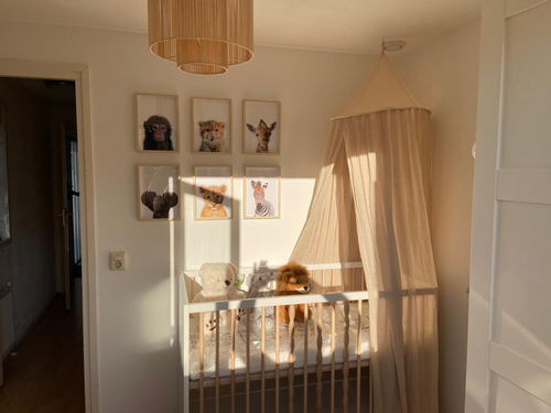 Zoiets vind ik wel mooi inderdaad! Maar ik heb het idee dat het plafond bij ons nog lager is… ik zoek iets iets van stof of rotan achtig, beetje in neutrale bruin/beige of groene tinten. En zoiets als deze vindt mijn man dan weer niet mooi, dat vindt ie te veel een ‘mand’ 🥲. Ik heb ook veel teddystof in het kamertje en vooral teddyberen/dieren/wolken, dus iets wat daarbij past zou ook echt top zijn