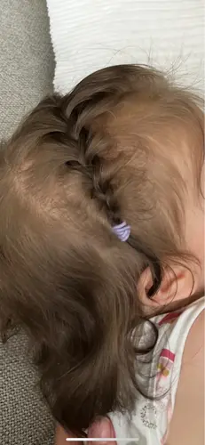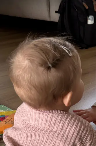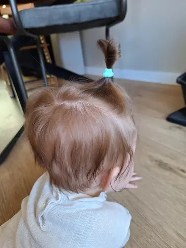 Hier begint het haar van mijn dochter eindelijk te groeien ze heeft dun fijn haar