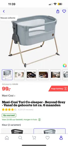 Wij hebben deze gehaald! Nu in de korting zie ik. Was erg makkelijk met in elkaar zetten, en je kan hem makkelijk meenemen op vakantie als camping bedje. Zit ook een hoes bij om hem mee te nemen.