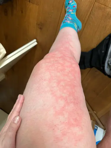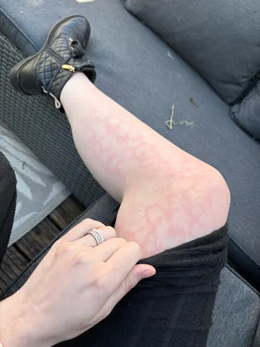 Ja heb ik ook gehad met broek aan in de zon! Het trok in de loop van de dag weer weg na even in de koelte gezeten te hebben. Oververhitting misschien?