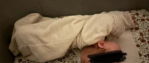 Ik dacht eerst dat het een poging tot omrollen was, maar nu slaapt ze elke nacht zo 😅