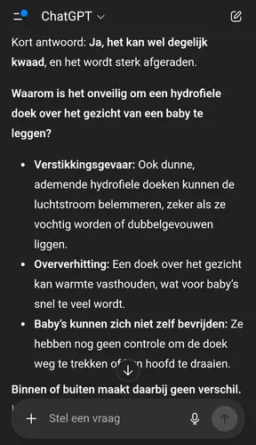 Maar als jij je niet oke voelt bij t feit dat ze hydrofiele doeken over je kindje zen hoofd legt moeten ze dit wel respecteren. Alhoewel ze hier bij mij ook dikke svhijt hebben. Zodra ik de deur uit ben doen hun het zoals hun denken dat goed is. Hahaha. Maja dit is mijn 3e en kweet niet beter.