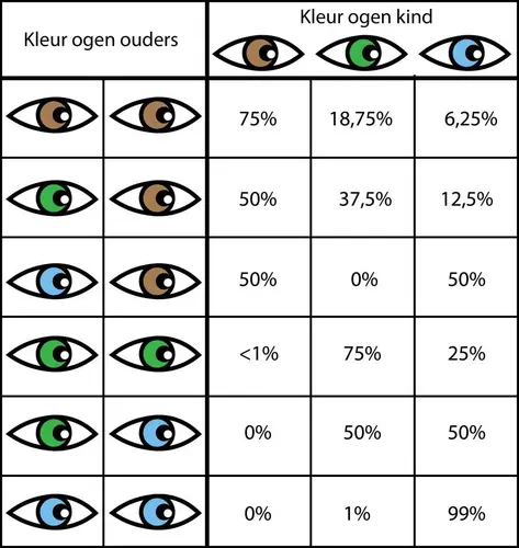 De afbeelding klopt niet helemaal, de kleur ogen van de grootouders speelt bijv. ook mee. Wel leuk om een beetje mee te kunnen gokken natuurlijk.