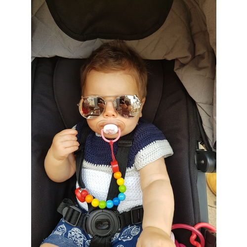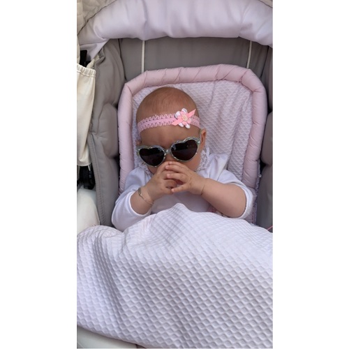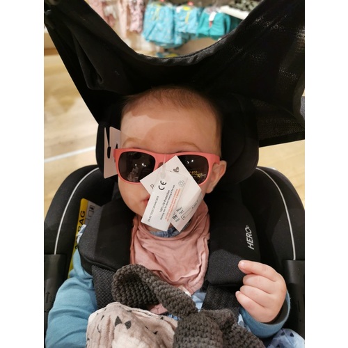 Sommige kleintjes hebben erg last van de zon die van mij heeft hele lichte ogen en doet niet anders dan tranen en wrijven wanneer ze geen schaduw heeft. Nu heb ik zonnescherm op de maxi cosi maar soms komt het eronder door dan is een zonnebril toch wel ideaal in plaats van een doek erover.