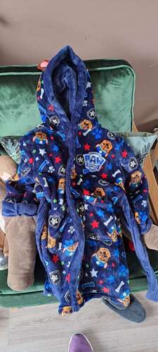 Heb de maat 110 van primark. Is wel wat te groot, maar sla de mouwen om en is heerlijk zacht